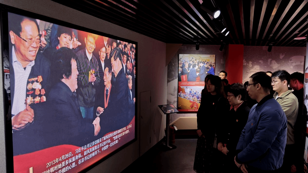 在事迹馆讲解员的引导下,党员们通过实物陈列、动态影像资料、场景还原等展陈形式,全面了解全国劳动模范尉凤英扎根岗位、攻坚克难的奋斗历程——从立足本职解决工作难题,到365天无休响应服务需求,深刻体会其“润物无声守初心、担当奉献践使命”的精神内核。