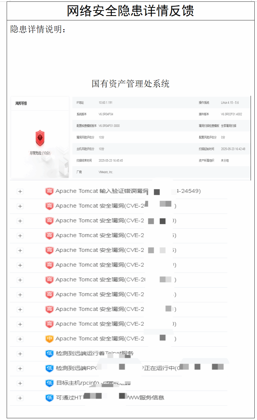 ·对于1X.XX.X.X91 服务器,聚焦存在的高风险漏洞,积极联系厂商开展版本升级修复,从源头消除漏洞带来的潜在风险。