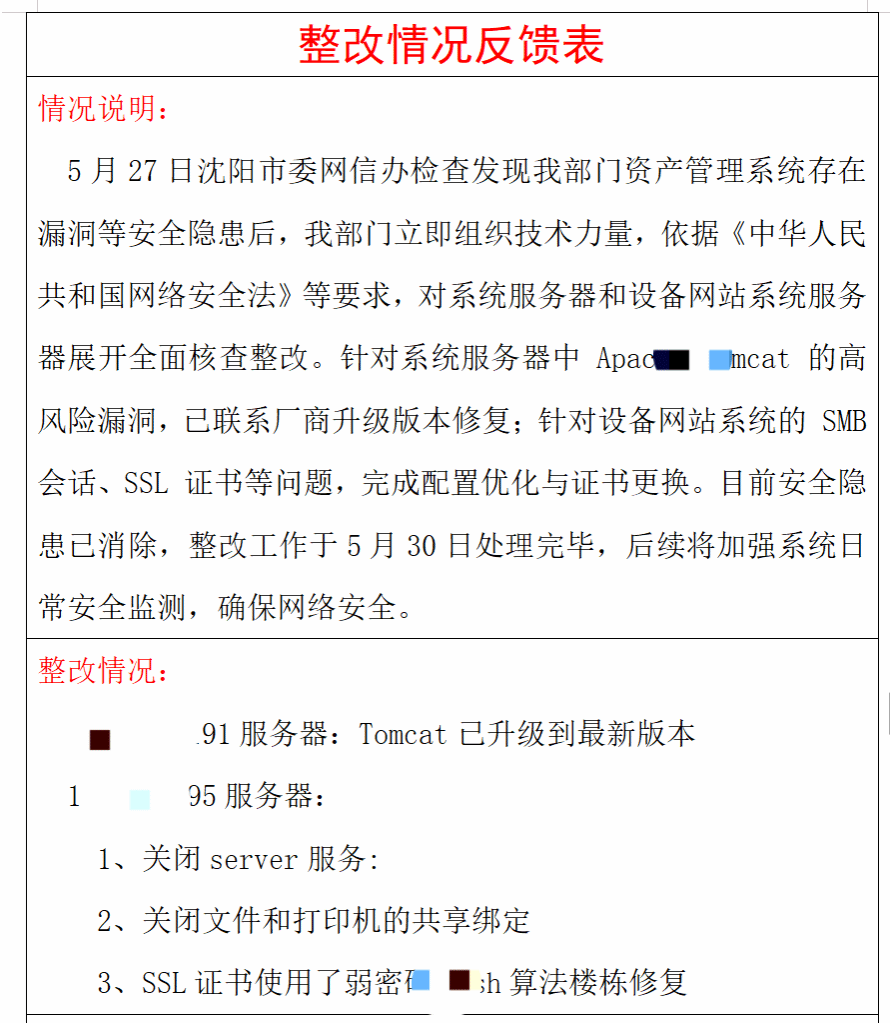 通过一系列精准操作,截至 5 月 30 日,所有网络安全隐患已全部消除,整改工作比告知书中要求的时限提前完成。随后,部门按要求将《整改情况反馈表》报送至教育技术中心网络室(博学楼 B319),顺利通过后续核查。