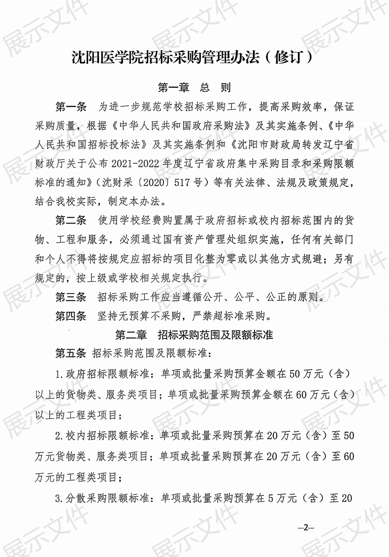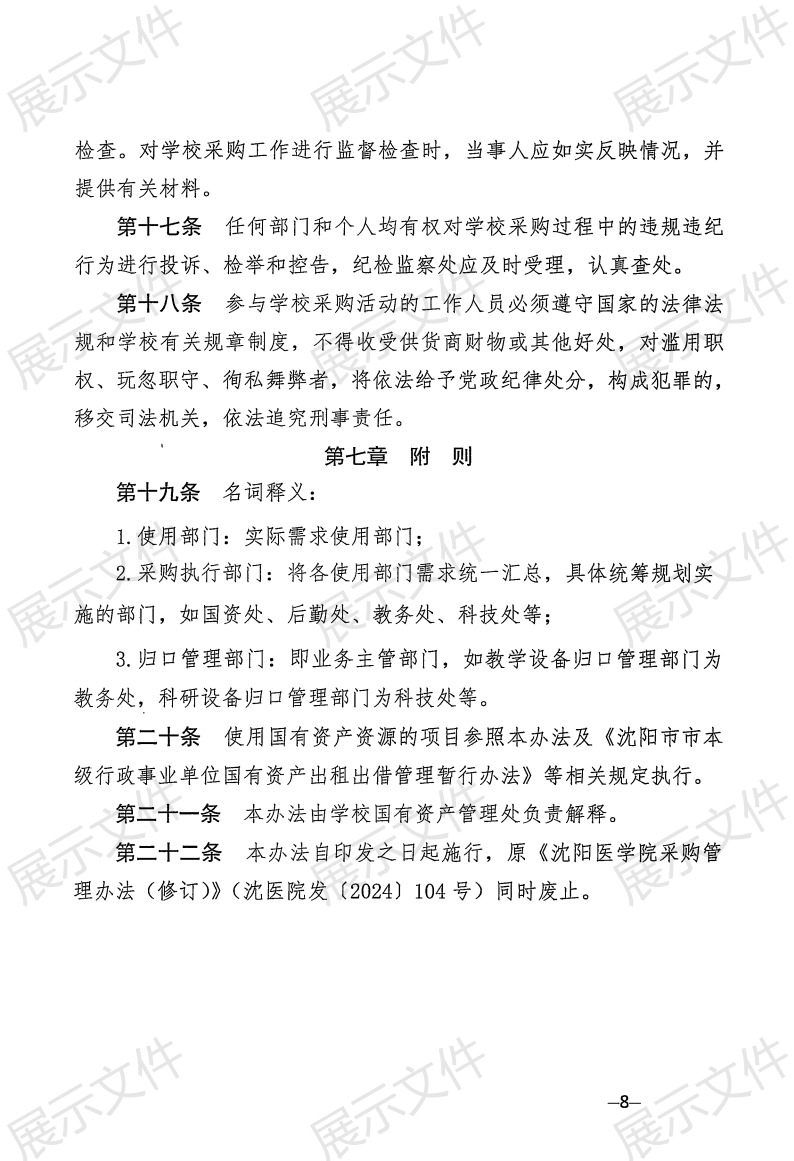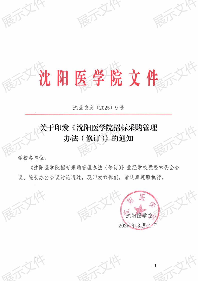 《沈阳医学院招标采购管理办法(修订)》沈医院发〔2025〕9号