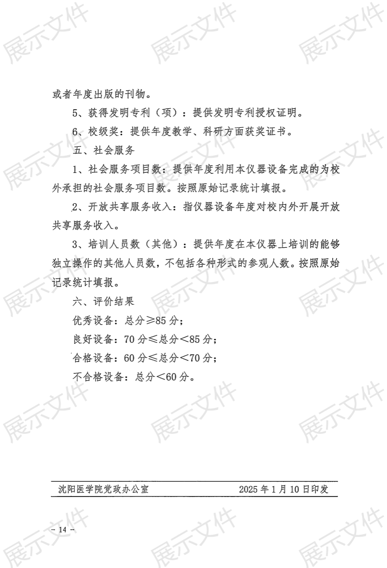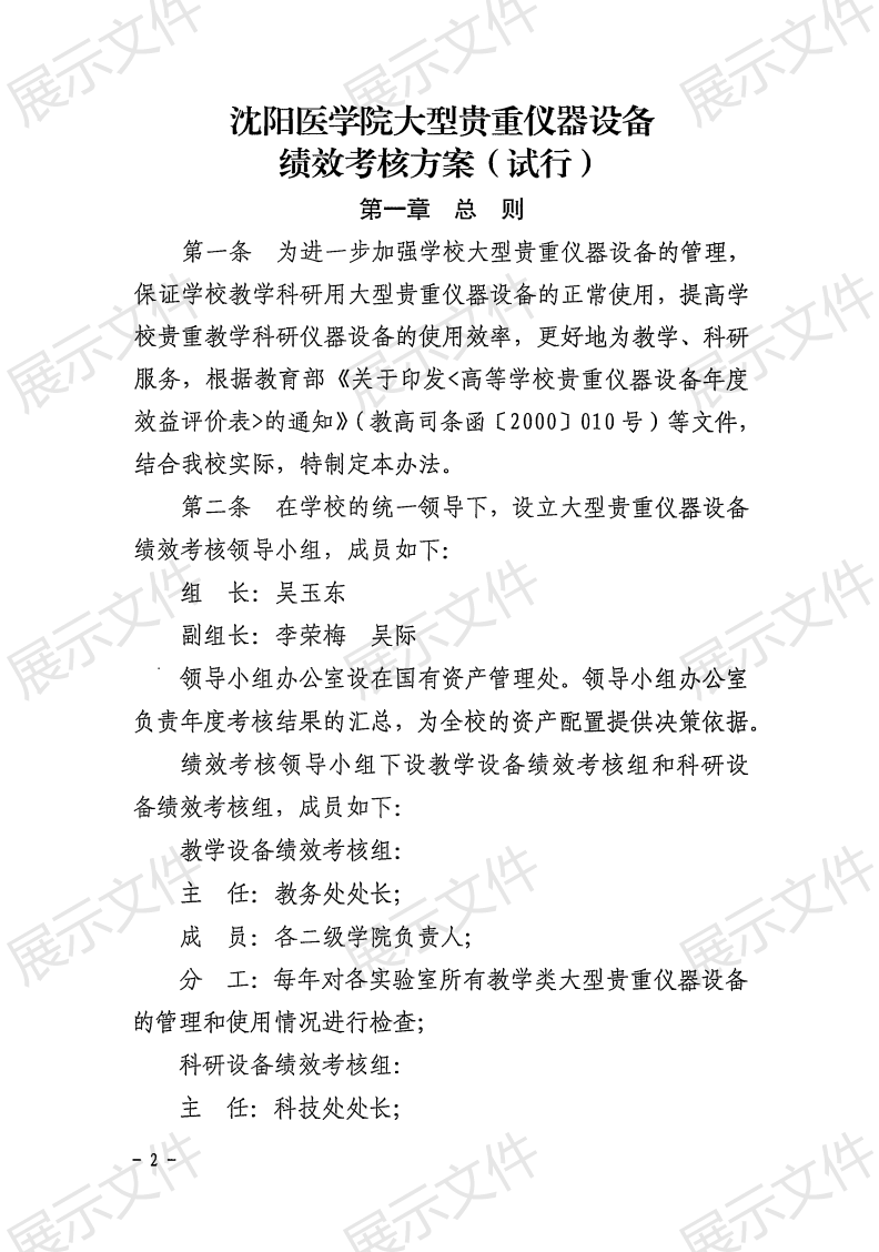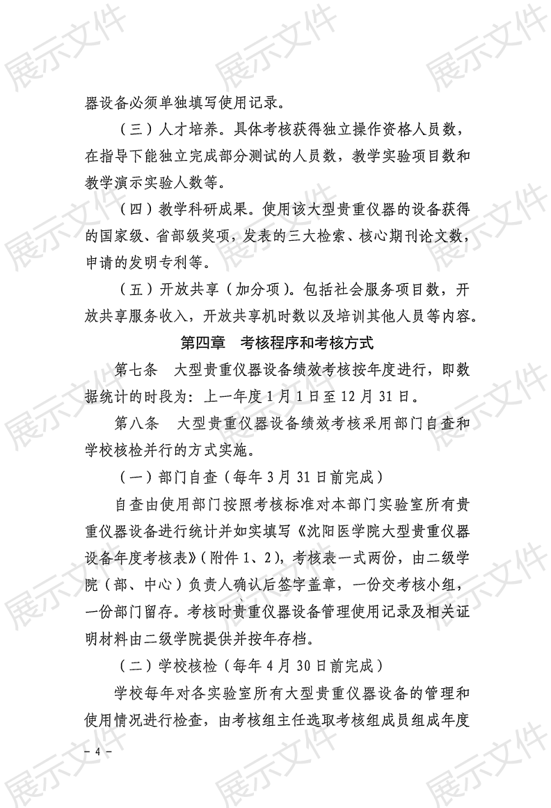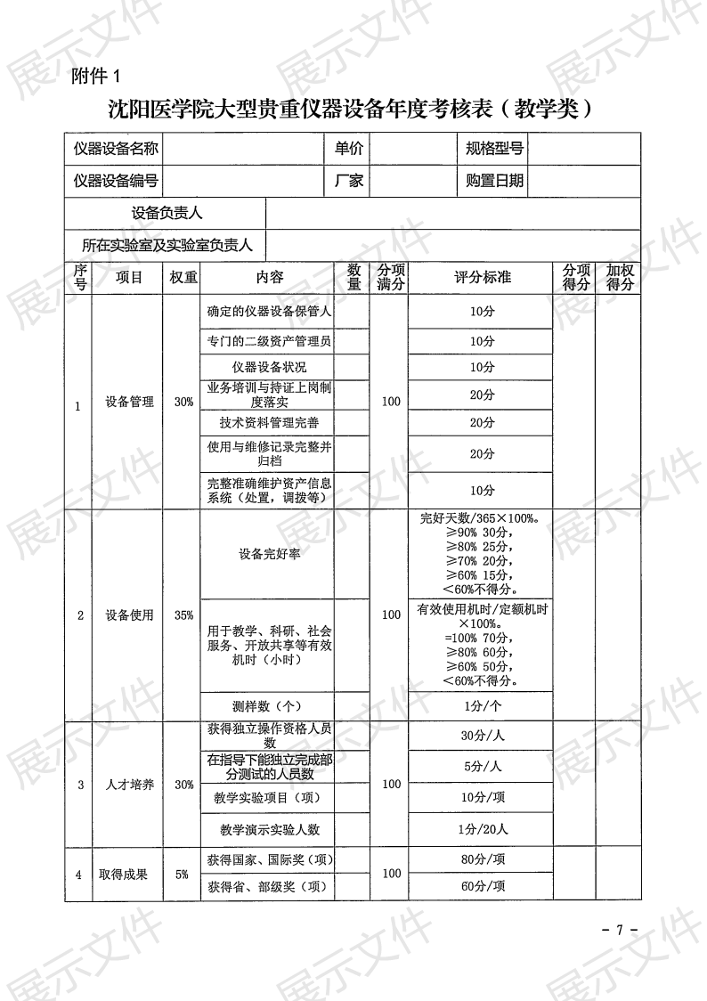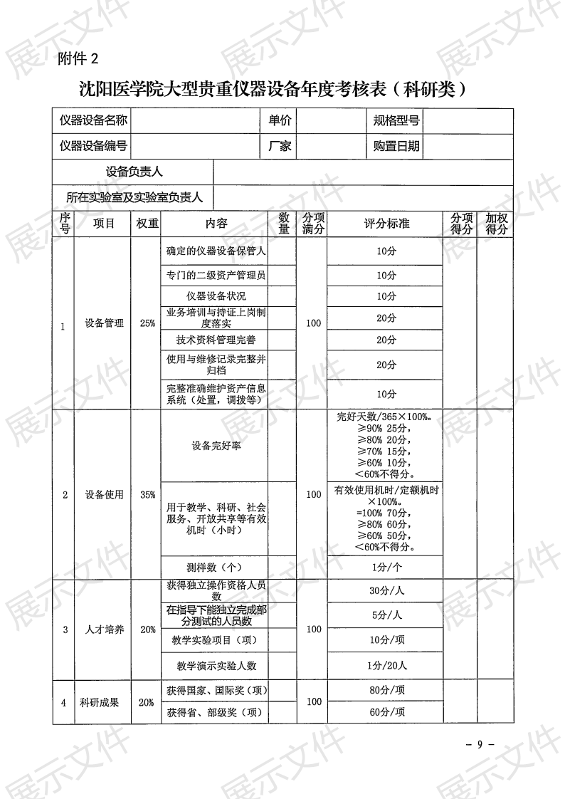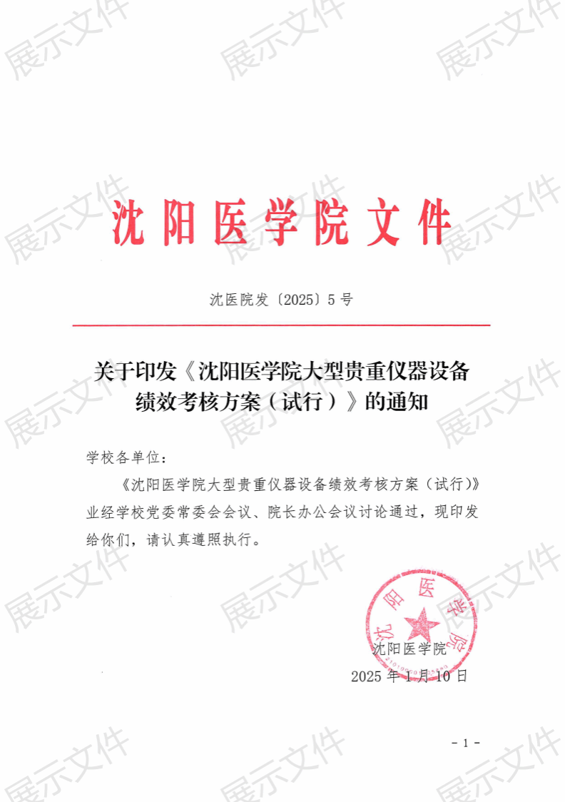 《沈阳医学院大型贵重仪器设备绩效考核方案(试行)》沈医院发〔2025〕5号